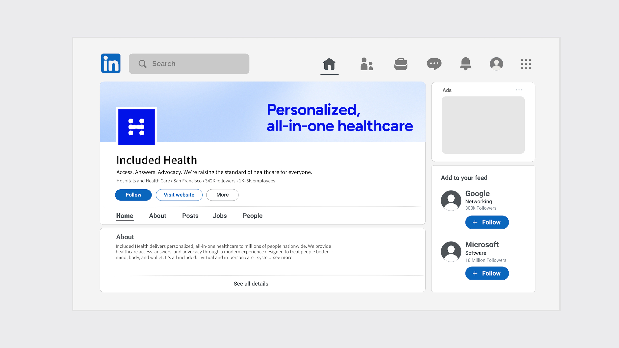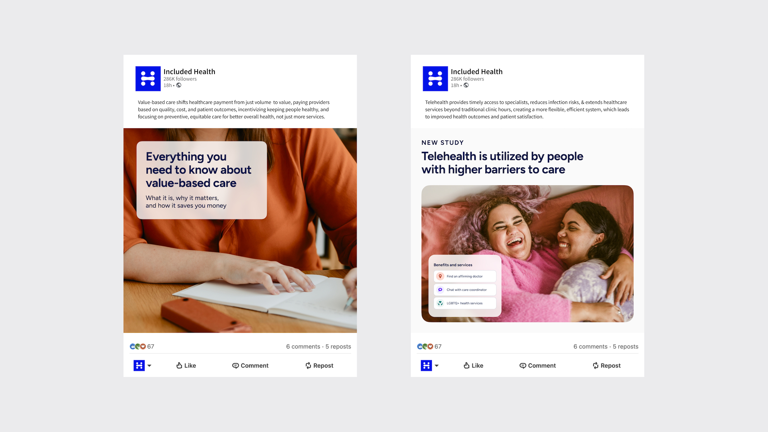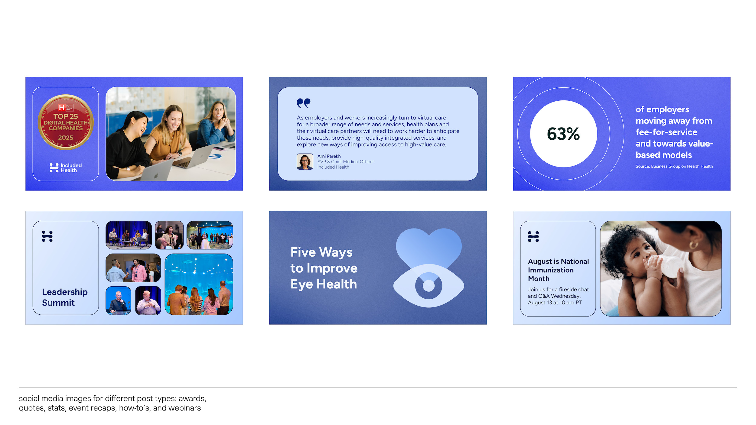 Select outward-facing projects from my time at Included Health, a company that provides personalized all-in-one healthcare experiences through precise navigation and cohesive virtual care, as a member of the brand strategy & creative team